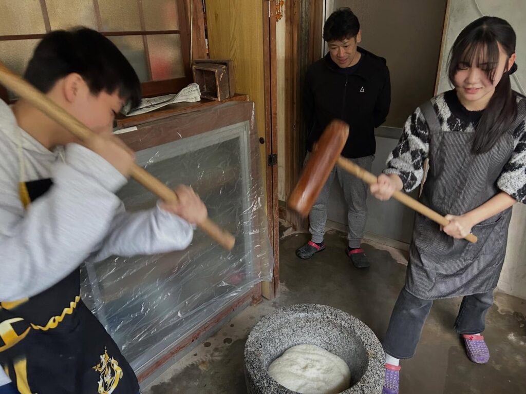 恒例の餅つき!80〜100年経っている竈門と石臼で!